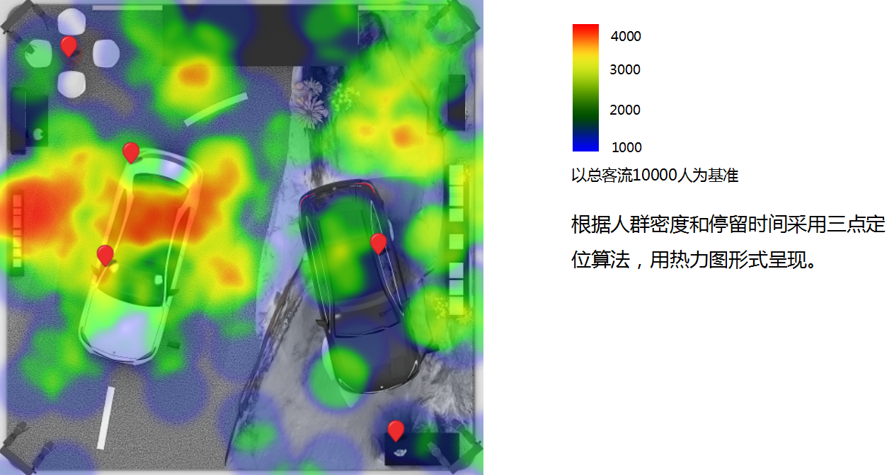 1. 客流和热力图分析,根据数据分析科学管理现场,做好人员安全预防,所展出的设备也做好财产安全保护
